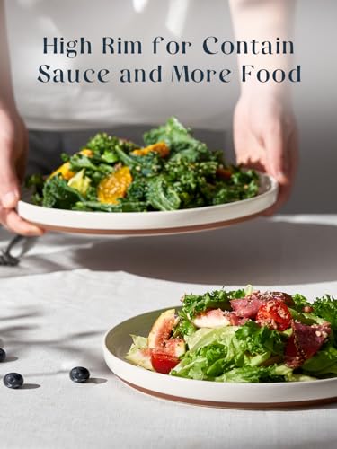 【Lightweight and Easy to Hold 】 Lighter than other ordinary ceramics and porcelain, with a high rim and arc wall design, which are more ergonomic and easier to hold. The matte bottom increases friction and prevents the plates from slipping off.