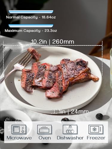 【Scratch Resistant and Durable】Microwave and Dishwasher Safe. These 10.5 inches round plates’ thick carcasses and made from double glaze, which means the plates are more durable for long long-lasting, and extra strong to prevent scratches, cracks, and breaks. So you will not worry about them being scratched by silverware and butter knife, or breaking in the oven, microwave and dishwasher.