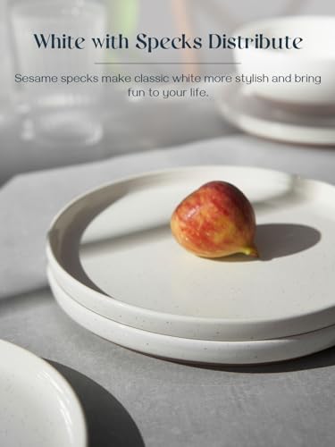 【Modern White Dinner Plates 】 This white ceramic plates set‘s sesame-speckled glaze even distribution, and the terra cotta color on the bottom presents a natural and simple style, that can match well with most occasions and home decor styles, perfect for home everyday use, Christmas, Thanksgiving, parties, gathering, restaurants, and etc.