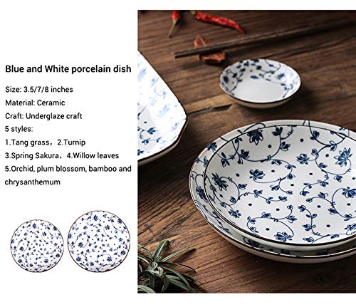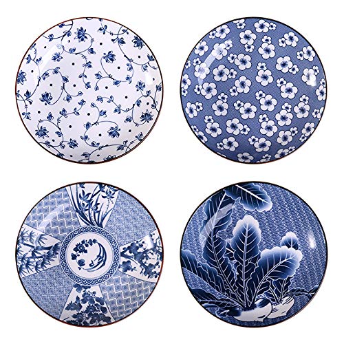 Gegong 4 Pack Blue and White Porcelain Dish Serving Plates Floral Dinner Shallow Plates Appetizer Salad Dessert Snack Plate (7 inch,Different patterns)