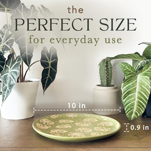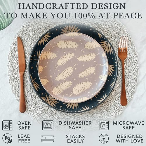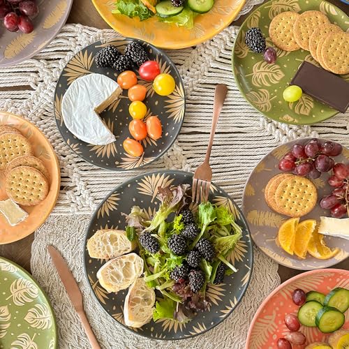 Mora Ceramic Boho Leaves Dinner Plates Set of 6, 10in. Microwave, Oven, and Dishwasher Safe. Scratch Resistant, Modern Bohemian Leaf Pattern Dinnerware – Kitchen Party Serving Dishes – Bold Colors