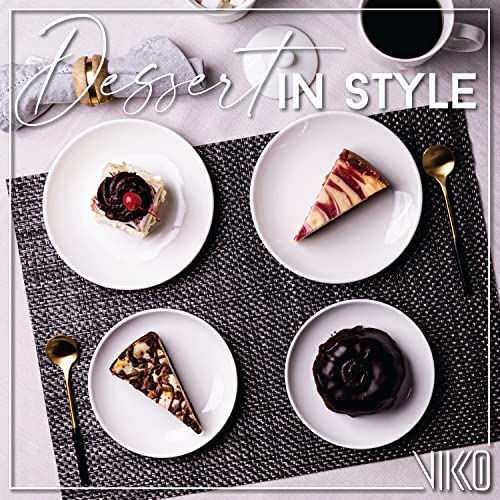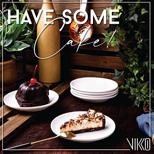 Vikko Dessert Plate, Set of 4 White Plates, Fine Porcelain, Stackable 6 Inch Dessert Plates, Dishwasher Safe