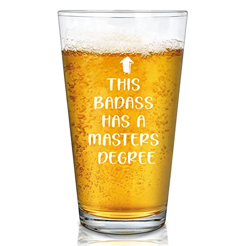 Masters Degree Beer Glass – 15Oz, Graduation Gift for Him, Badass Design Glass, Perfect for Home or Office Use