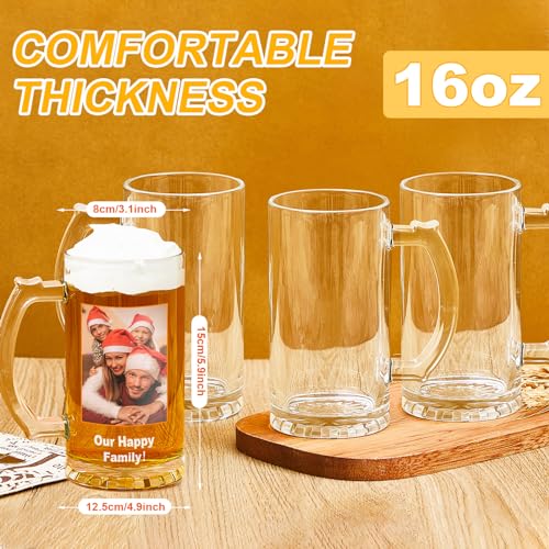 Mifoci 6 Pcs Beer Mugs for Sublimation 16 oz Glass Cups Can Add Photo Text or Images on Personalized Beer Glass for Husband Dad Men for Father’s Day Oktoberfest Wedding Gift (Clear)