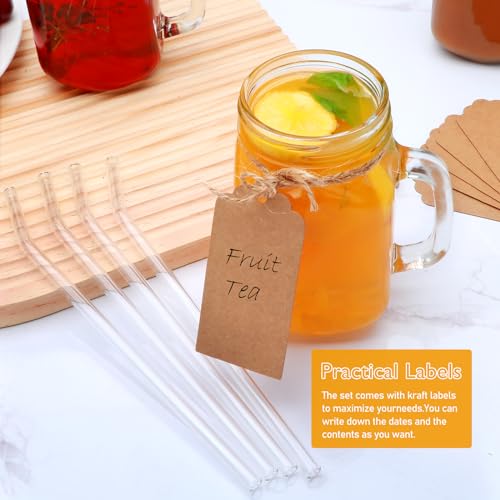 Convenient Accessories – Each glass mason jar mug comes with a beautiful kraft paper tag and natural jute twine. You can easily write dates or names on the tags as identifiers, then you can get what you want in one sight by reading message on it.