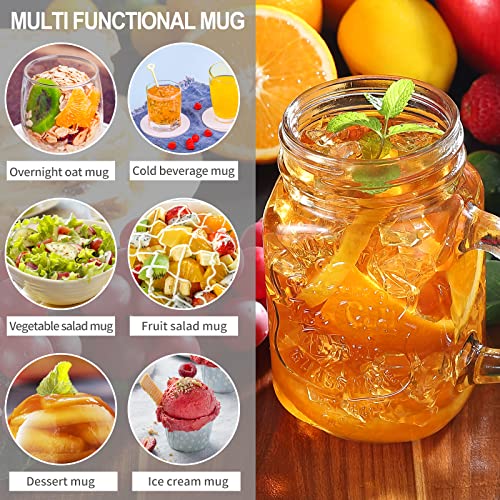 Smoothie Cup with Lid and Straw, Iced Coffee Cup Reusable, Mason Jar Cups, Mason Jar Drinking Glasses for Juice Coffee Milkshake, Mason Jars with Handle Set of 2 (WHTIE)