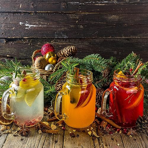 TANGLONG Mason Jar Cups, Mason Jars With Handle And Lids, Mason Jar Drinking Glasses, Glass Mason Jar Mugs 16 oz –12 Pack