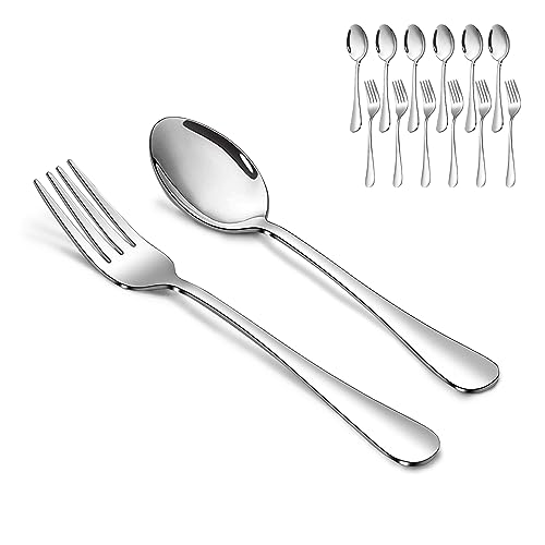 Forks and Spoons Set, 6PCS 6.7″ Salad Forks and 6PCS 6.7″ Soup Spoons, Stainless Steel Silverware set of 12, Mirror Polished & Dishwasher Safe