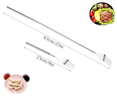 💠💠【ADJUSTABLE TELESCOPIC FORK】: The extending fork is designed as extendable handle which can be adjusted to 23~63 cm/9~25inch,convenient to use,you can use long fork for cake or anywhere you want in the daily life.Suit Different Applications.