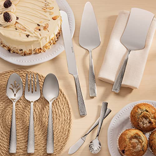Hammered 8-piece hostess serving set: includes 12-inch cake knife, cake server, lasagna server, serving fork, serving spoon, slotted serving spoon, sugar spoon, butter spreader