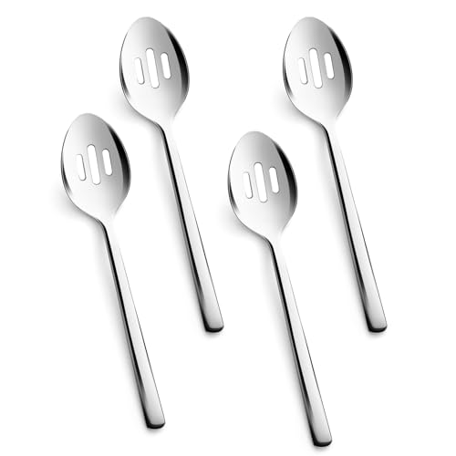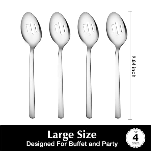 KINGSTONE Large Hostess Serving Utensils 4 Piece Slotted Serving Spoons Sets,18/10 Stainless Steel Heavy Duty 9.84inch For Buffet, Wedding, Party,Catering,Dishwasher Safe