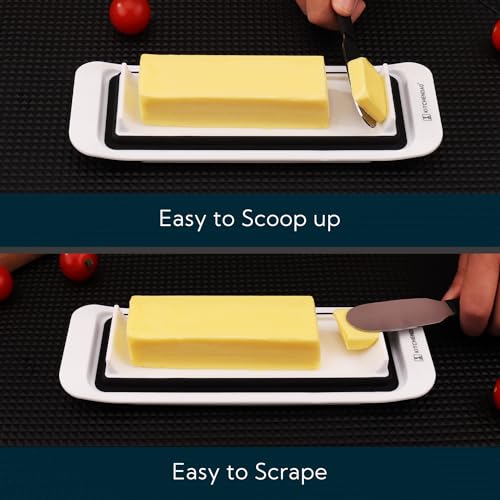 KITCHENDAO Airtight Butter Dish with Lid for Countertop and Refrigerator Door Shelf, Easy Scoop-Dishwasher Safe, Plastic Butter Holder Tray Container for West/East Coast Butter, White