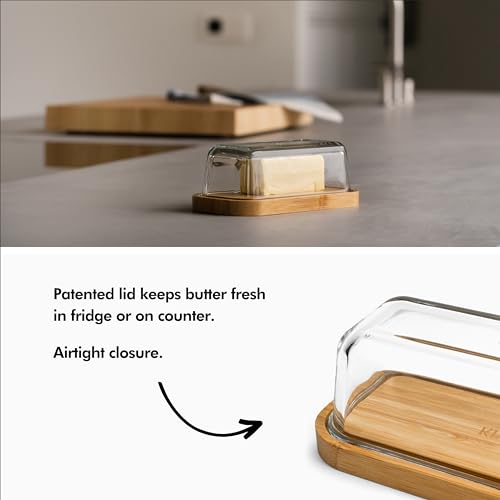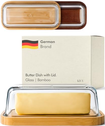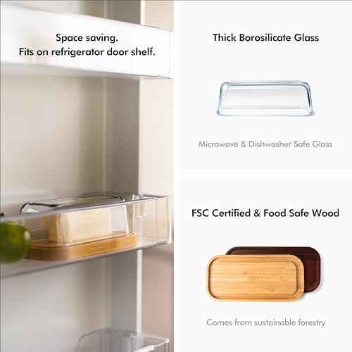 KIVY Glass butter dish with airtight lid that keeps butter soft – For countertop and refrigerator door shelf – Butter tray with lid fridge – Butter holder for counter – Covered butter dishes with lid