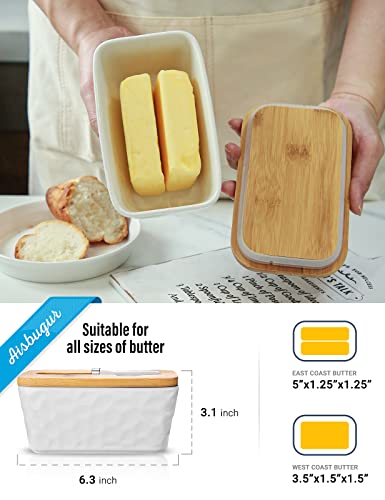 Large Butter Dish with Lid for Countertop Porcelain Butter Container with Knife Double Silicone Seal Butter Dishes with Covers Perfect for West or East Coast Butter, Unique Stone Pattern White