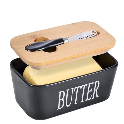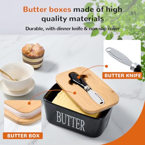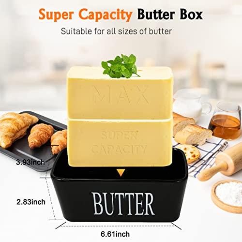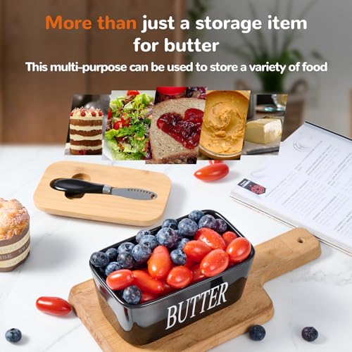Large Butter Dish,Ceramic Butter Dish with lid and knife,quality Silicone Sealing Butter Dishes is Good for Kitchen Baking and Gift,Black…