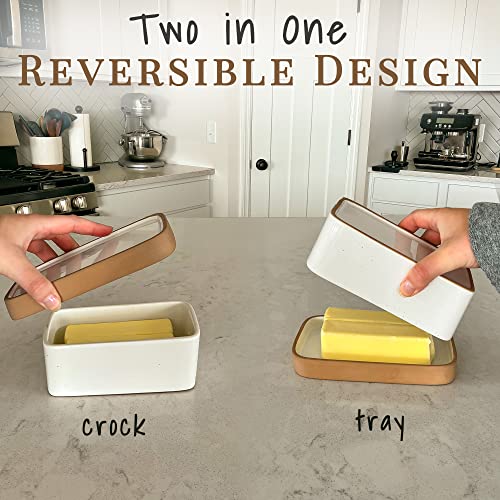Mora Ceramic Two-in-One Butter Dish with Lid, Covered Butter Crock Container to Leave on Countertop – Large Storage Keeper/Holder for Kitchen, Gifts for Her, Butter Tray For Counter – Vanilla White