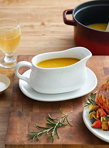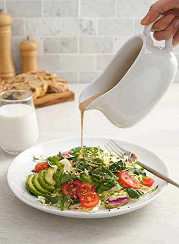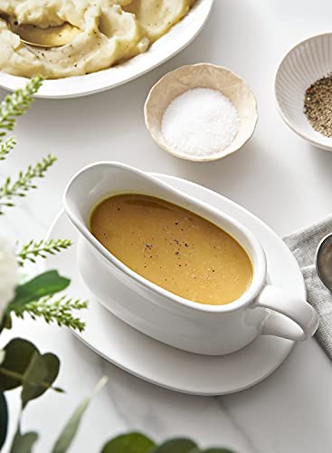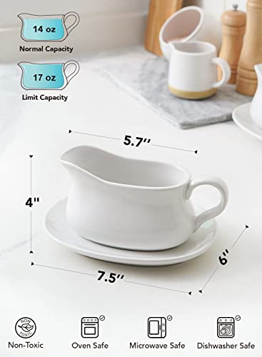 LE TAUCI 17oz Gravy Boat with Saucer Stand, Set of 1, Ceramic Sauce Boat with Tray for Salad Dressings, Creamer, Broth, Black Pepper, White