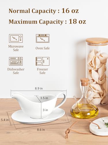 Yedio 18 oz Gravy Boat with Saucer, Large White Ceramic Gravy Boat for Thanksgiving Christmas, Boat and Tray for Turkey Beef Sauce, Salad Dressing, Creamer, Milk, Broth,Microwave and Dishwasher Safe