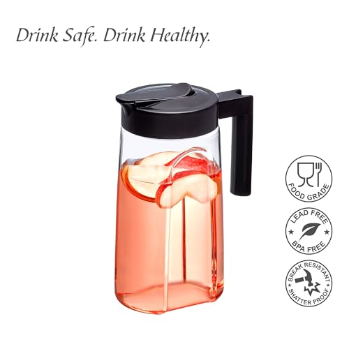 [DRINK SAFE] This Tritan pitcher is unbreakable. Also, with its push lid, sturdy handle, stable base, it is easy and safe and durable for your everyday use.