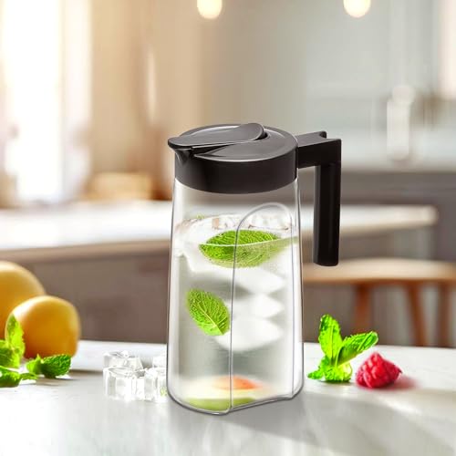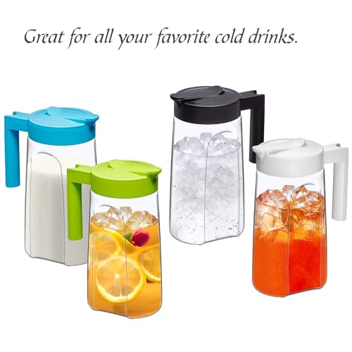 [DRINK FRESH] With its slim shape, the pitcher fits easily on the refrigerator shelf or the side door. With its large capacity, the pitcher is ideal for your favorite iced and hot drinks: juice, lemonade, fruit infused water, iced tea, iced coffee, milk, punch, sangria, brewed tea, and more.