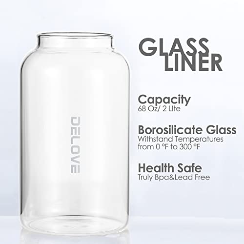Be the first to review “Delove 68 oz/2 Liter Glass Pitcher with Shatterproof Shell – Heat Resistant Glass Liner – Stainless Steel Lid – Carafe & Jug for Iced Tea,Hot/Cold Water,Homemade Juice Beverages (Black)”