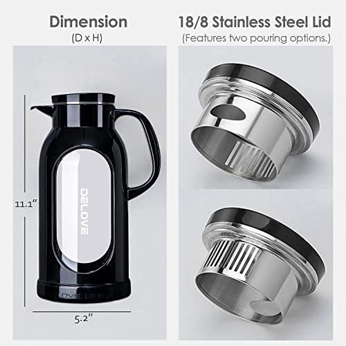 Delove 68 oz/2 Liter Glass Pitcher with Shatterproof Shell – Heat Resistant Glass Liner – Stainless Steel Lid – Carafe & Jug for Iced Tea,Hot/Cold Water,Homemade Juice Beverages (Black)