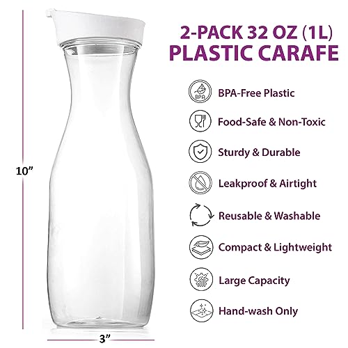 DilaBee Plastic Water Pitcher With Lid Round Carafe Pitchers for drinks, Milk, Smoothie, Iced Tea, Mimosa Bar – BPA-Free – Not Dishwasher Safe (2-Pack, 32 Ounce)