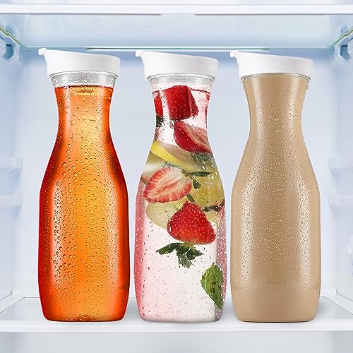 ULTIMATE MIMOSA BAR SUPPLIES : These carafe pitchers can hold a variety of drinks such as milk, iced tea, juice dispenser, cold brew pitcher, infused water carafe, lemonade, cocktails and more. The perfect drink containers for your home and celebrations.