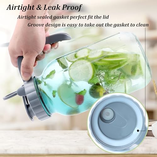 Ergonomic Widen & Anti Slip Handle : The handle of the lids features Brand new design, widen the handle to increase the distance between the handle and the jar to make the holding more comfortable. the inside of the handle with small arc-shaped protrusion could fit your hand comfortably and enhance stability and control when pouring, reduce the risk of slips and spills. It also store in fridge safely to make varieties iced beverages.