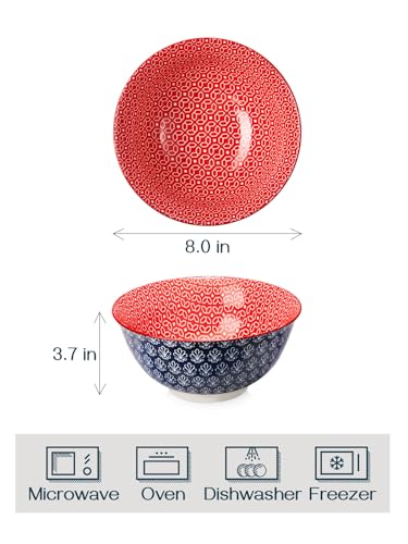 【LARGE AND DEEP】With a generous 8-inch diameter and a spacious 50-ounce capacity, they are perfect for serving a variety of dishes, including salad, pasta, pho, ramen, soups, and even desserts. The bowls have ample space for generous portions, making them ideal for single serving as well as family gatherings or dinner parties.
