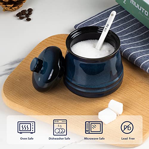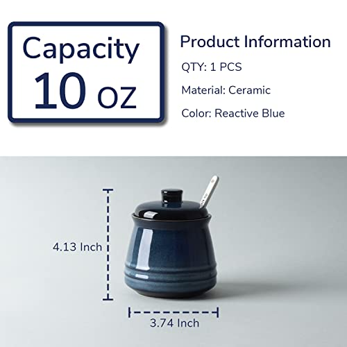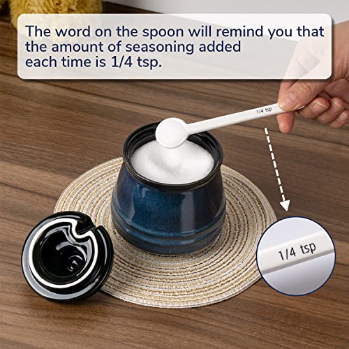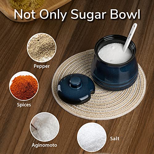 Porcelain Sugar Bowl, 10 oz Seasoning Cellar with Lid and Spoon, Sugar Canister for Coffee Bar, Salt Container for Kitchen, Blue