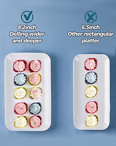 DELLING Large Serving Platter Set 14 inch Widened Large Serving Tray, White Rectangular Plates, Large Serving Platters for Entertaining, Serving Trays for Party, Oven Safe Dinnerware, Set of 3