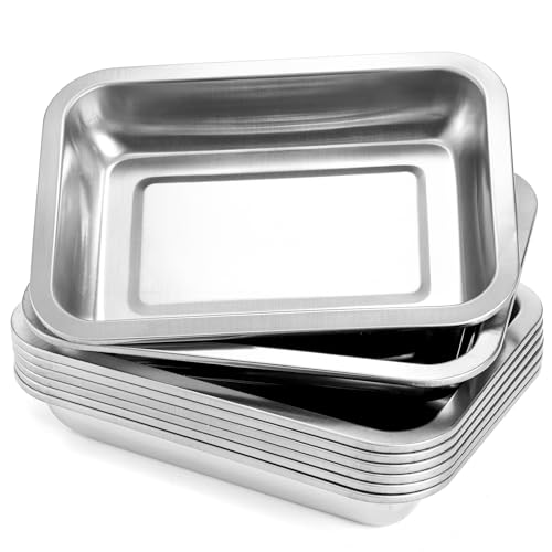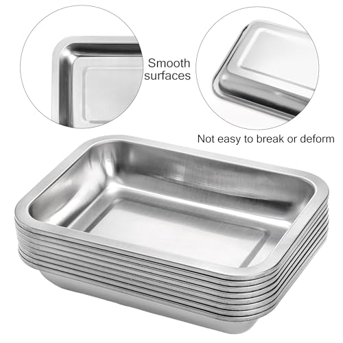Yesland 8 Pack Breading Trays, Stainless Steel Serving Tray 10.4 x 7.7 x 1.75 Inch Large Deep Breading Pan Food Prep Trays for Breadcrumb Dishes, Schnitzel, Fish