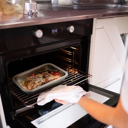 Large size and stackable. Size of dredging trays: 10.4”L x 7.7”W x 1.75”H, perfectly accommodate a variety of food and meeting your cooking requirements.