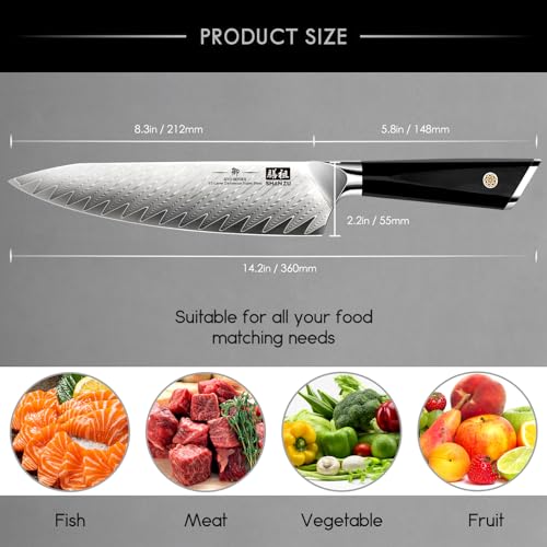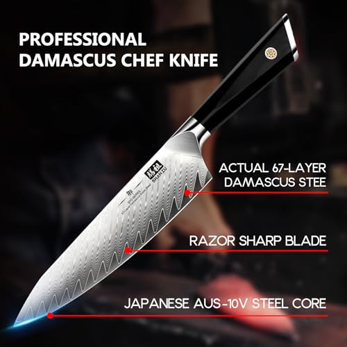 SHAN ZU Damascus Chef Knife 8inch, 67-Layer High Carbon Steel Kitchen Knife,Ultra Sharp Japanese Chef Knife,Professional Kitchen Utility Knives with G10 Ergonomic Handle Cooking Knife wiith Gift Box