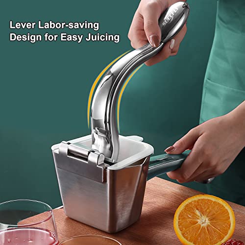 Lemon Squeezer Stainless Steel, Manual Juicer Citrus Lime Orange Fruit Squeezer Heavy Duty Ergonomic Handle Labor-saving Large Capacity Juice Press Hand Handheld Juicer (5 Year Warranty)