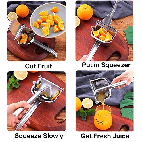 Real Stainless Steel Lemon Squeezer Citrus Juicer Hand Press Heavy Duty Manual Squeeze Juice Extractor Maker Orange Lime Grapefruit Presser – Bonus 50 Pcs Filter Bags