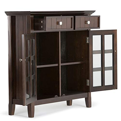 Your entryway is the main traffic zone of your home and sometimes it can be a mess! It is for this reason we designed the Acadian Entryway Storage Cabinet. Two drawers conveniently hold your personal items while the tempered glass two door cabinet has two adjustable shelves that offer an abundance of space to store away anything you wish to remain hidden…your secret is safe with us. But don’t be limited by our description, this flexible and functional piece can be used in just about any room in your home.; Efforts are made to reproduce accurate colors, variations in color may occur due to computer monitor and photography; At Simpli Home we believe in creating excellent, high quality products made from the finest materials at an affordable price. Every one of our products come with a 1-year warranty and easy returns if you are not satisfied