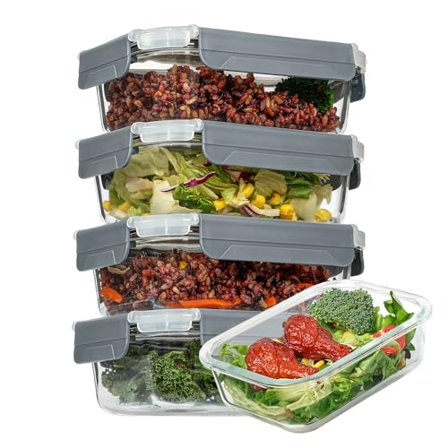 【5 PACK GLASS STORAGE CONTAINERS WITH LIDS】5 glass food storage containers with 5 lids. The 22oz food storage containers for meal prep, office lunches, leftovers, portion control, fulfill all your storage needs. Perfect for bringing to the gym, picnics, barbecue and more.
