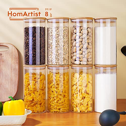 Glass Jars with Bamboo Lids 34 FL OZ [Set of 8], Glass Canisters with Airtight Lids, Glass Food Storage Containers for Pasta, Oats, Coffee, Flour, Sugar, Rice, Best for Kitchen & Pantry