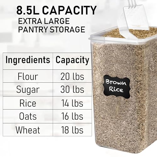 WHITE FEATHER SUPPLIES Extra Large Food Storage Containers with Airtight Lids, Set of 2 (8.5L / 287 Oz) MAXIMIZE Storage Space for Flour Sugar Rice Baking Supply