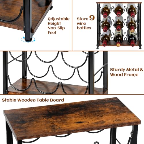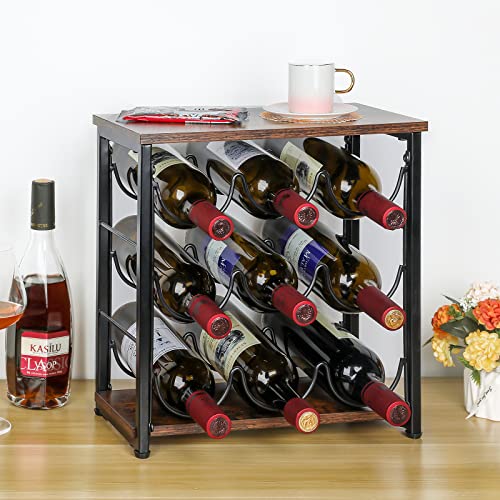 🍷【Upgraded Material & Easy Installation】- The countertop wine rack is constructed with top wood board, practical and useful that you can place some decoration or the corkscrew on it. Our 9-bottles wine rack is well-designed that will be super easy to assemble, just follow the instructions to tighten the screws and you can get an stylish wine rack. You can use it on tabletop, countertop, or in your kitchen cabinet.