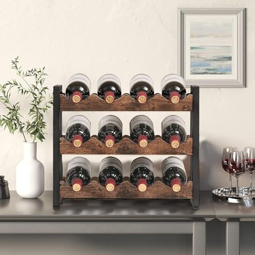 Space-saving Storage & Display Wine Rack:: Compact wine rack freestanding floor holds 12 wine bottles effortlessly, makes the wine bottles neatly arranged for space-efficient storage, decoring your home and making your kitchen, pantry, cabinet, dining room, basement, countertop, bar or wine cellar well-organized.
