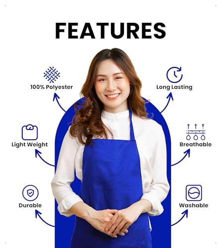 Aprons Unisex Bib Aprons – 100% Polyester Chef Apron with Extra Long Ties – Cooking Apron for Men Women