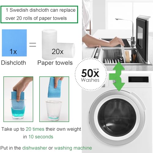 METUUTER 10 Packs Swedish Dishcloths for Kitchen, Reusable Kitchen Dishcloths Compostable Cellulose Dish clothes for Kitchen and Household Use