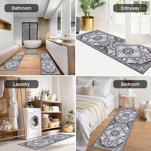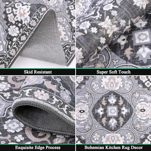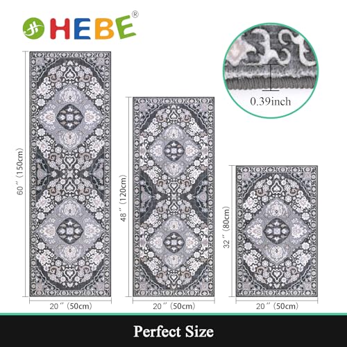 Farmhouse Kitchen Rugs Sets 3 Piece with Runner: HEBE boho kitchen rugs set include 3 piece kitchen mats for floor, which measures 20″x32″+20″x48″+20″x59″, wider and larger size than other kitchen floor mat, perfect size for your kitchen floor, also suitable to use as entryway rug, laundry room rugs, bathroom mat. This vintage kitchen mats washable looks very nice and adds an elegant touch in your home!