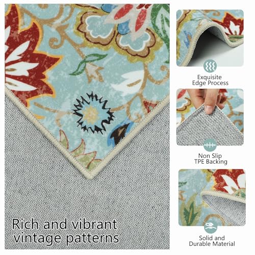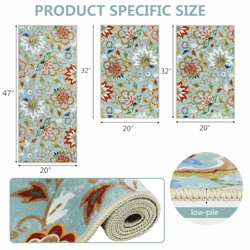 Boho Kitchen Rug Sets 3 Piece:These boho floral kitchen mat comes with 3 piece set which measures 20”x32”+20”x32”+20”x47”.Perfect combination size will meet your various needs for home decor.You can arrange them at almost any place,kitchen,front door,bathroom etc.