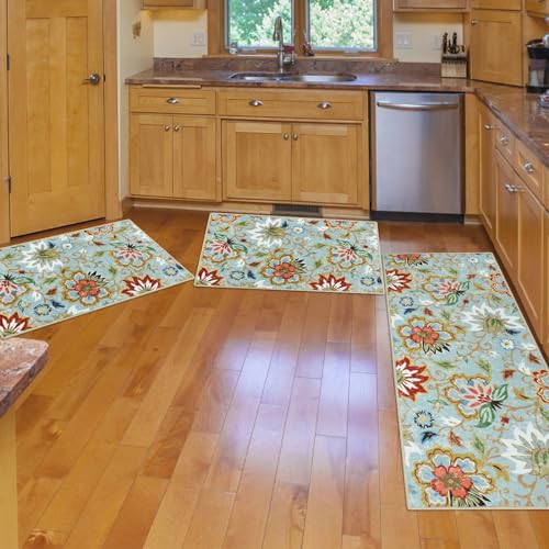 Homcomoda Boho Floral Kitchen Rugs Sets 3 Piece with Runner Kitchen Mats for Floor Non Slip Kitchen Rugs and Mats Washable Kitchen Runner Rug Sets for Hallway Laundry Kitchen