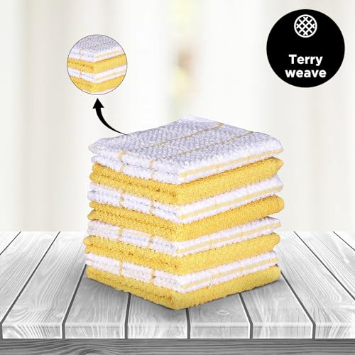 AMOUR INFINI Terry Dish Cloths Set of 8 – Highly Absorbent Super Soft Quick Drying – 12×12 Inch Dishcloths for Kitchen Cleaning & Drying Dishes – Lint Free Dish Rags (12×12 Inch – Yellow)