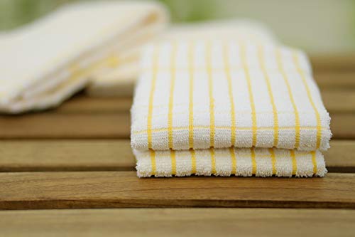 AMOUR INFINI Terry Dish Towels Pack of 4 Highly Absorbent Quick Dry Super Soft 20×28 Inch Kitchen Towel with Hanging Loop for Cleaning & Drying Dishes (Yellow)